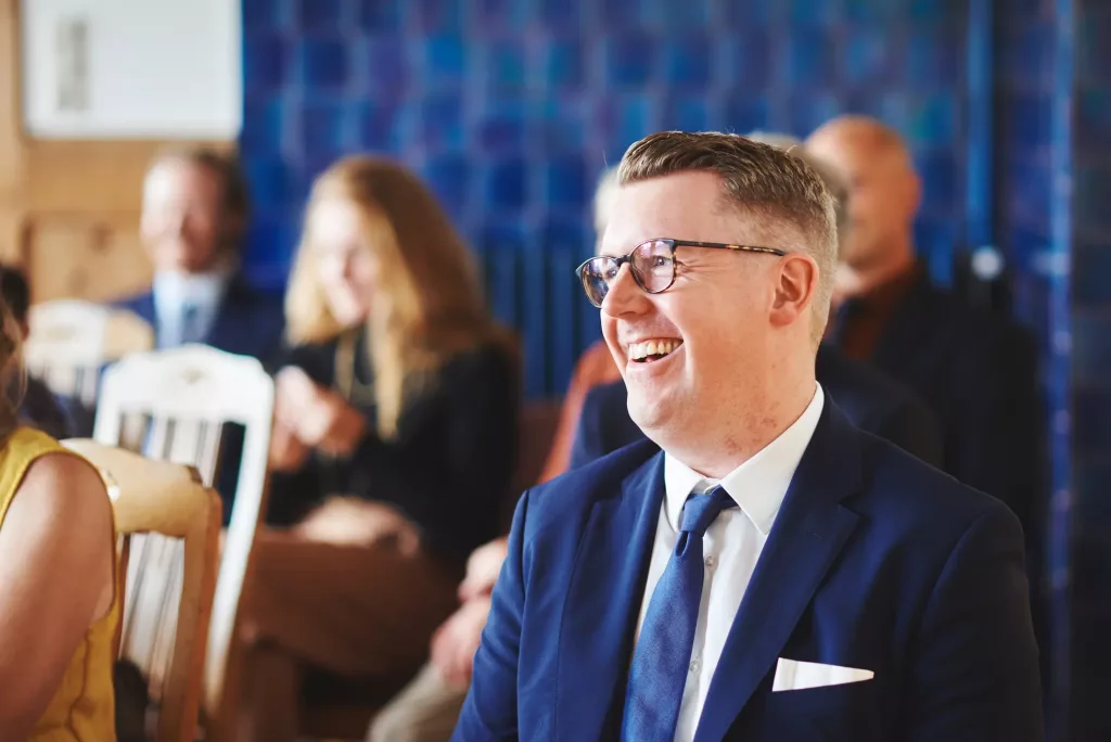 Die Gäste haben Platz genommen, die Sonne scheint durch die großen Fenster und taucht alles in goldenes Licht. Die Feier beginnt und meine Arbeit ist getan.