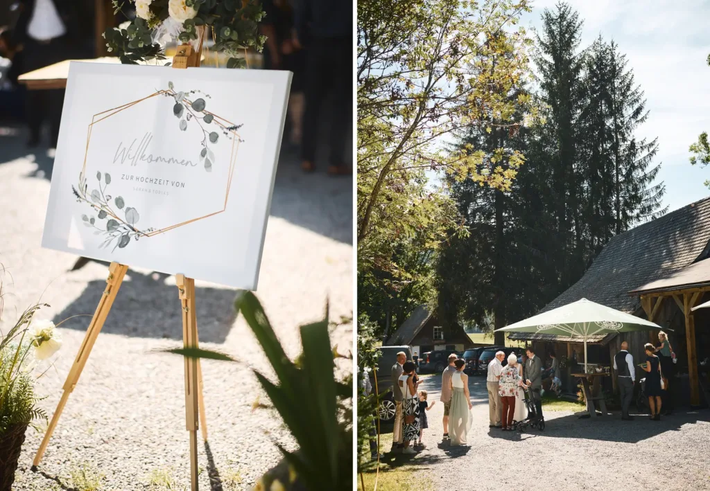 Der Tag mündete in eine ausgelassene Feier im gemütlichen Ambiente des Henslerhofs. Die Gäste genossen köstliche Speisen, Lachen erfüllte die Luft, und auf der Tanzfläche wurde bis spät in die Nacht gefeiert. Die warme, familiäre Atmosphäre machte die Hochzeit zu einem unvergesslichen Erlebnis, bei dem alle ganz sie selbst sein konnten.